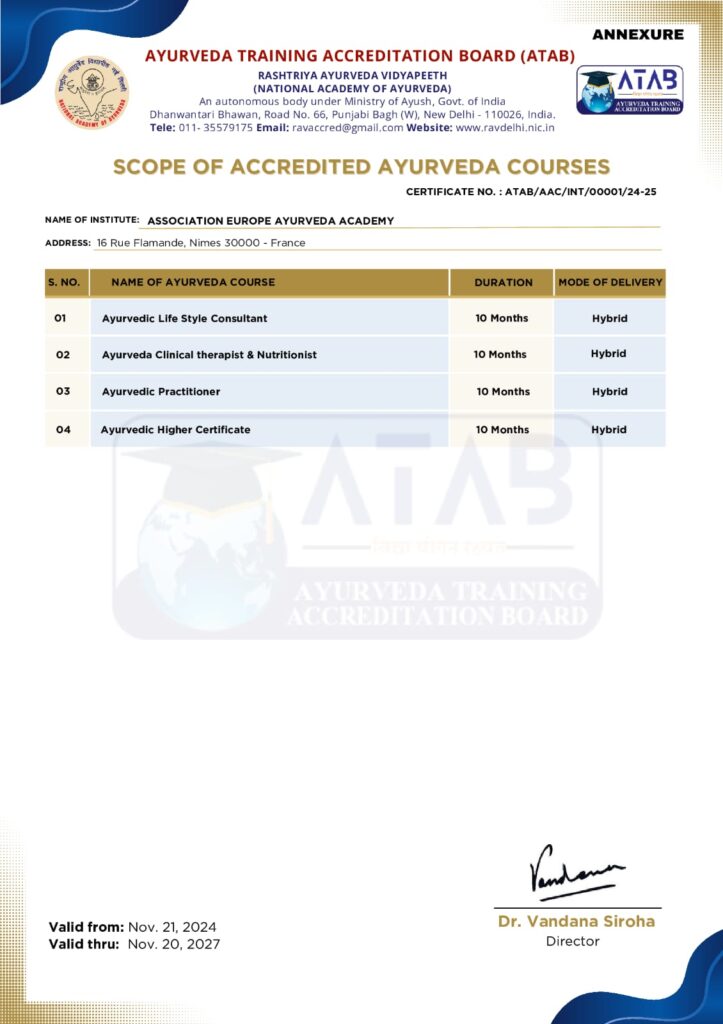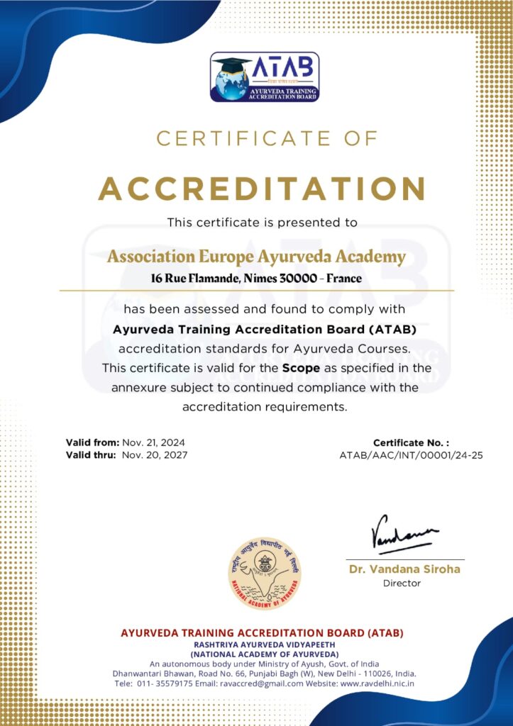 Accredited by Ayurveda Training Accreditation Board(ATAB) - Ministry of Ayush-Govt of India